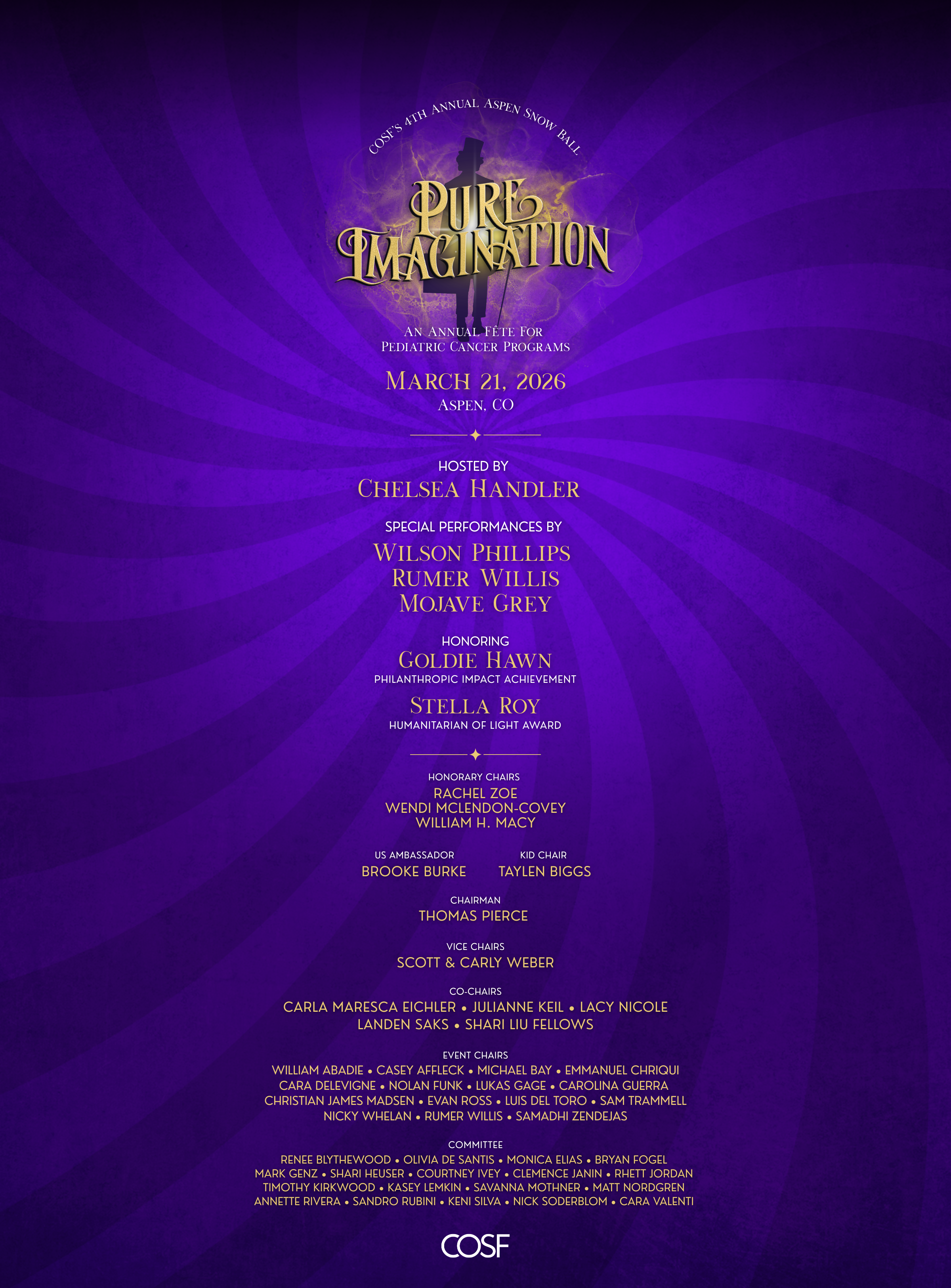 Aspen Snow Ball Week attracts influential philanthropists, powerful brands, and entertainers in the pursuit of one common goal to eradicate pediatric cancer. The gala boasts celebrity performances and celebrates honorees making humanitarian and philanthropic contributions aligned with our mission.